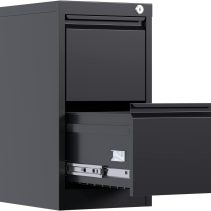 2 Drawer Metal Vertical File Cabinet with Lock, Narrow Filing Cabinet with Hanging Letter/Legal/A4 Folders for Home, Office, Assembly Required, Black, 2 Drawers